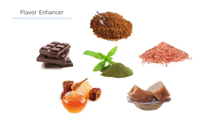 มีผลโดยตรงต่อการทำให้เกิดรสชาติต่างๆ ในขนม การเลือกวัตถุดิบที่ให้รสชาติในกลุ่มธรรมชาติจะช่วยให้ประโยชน์ที่ดีกับขนมสุขภาพ ได้แก่ น้ำตาลโตนด มีค่าดัชนีน้ำตาลต่ำ ทำให้ผู้ป่วยเบาหวานสามารถทานได้โดยไม่เป็นอันตรายต่อการเพิ่มระดับน้ำตาลในเลือด , การใช้สารให้ความหวานแทนน้ำตาลช่วยลดการบริโภคน้ำตาลของผู้ที่ต้องการลดความอ้วน หรือผู้ป่วยเบาหวานได้