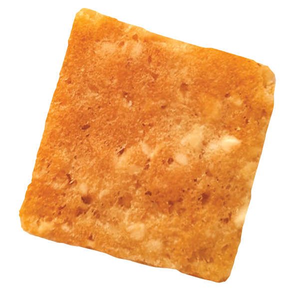 จุดเด่น >> ไม่มีแป้งสาลี ไม่มีน้ำตาล ไม่มีเนย