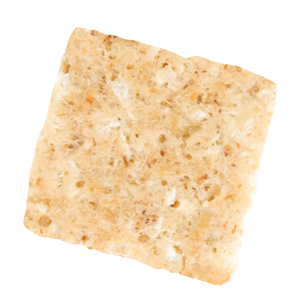 จุดเด่น >> เป็นแหล่งไฟเบอร์ ไม่มีแป้งสาลี ใช้น้ำตาล GI ต่ำ โซเดียมต่ำ ไม่เติมน้ำมัน